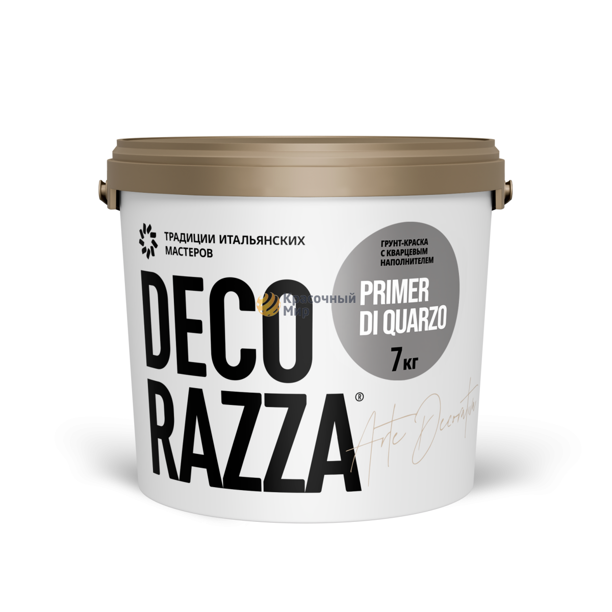 Грунт-краска Primer di Quarzo применяется для цветового выравнивания подготавливаемой поверхности, а также для улучшения адгезии и удобства нанесения последующих финишных декоративных покрытий ТМ Decorazza.