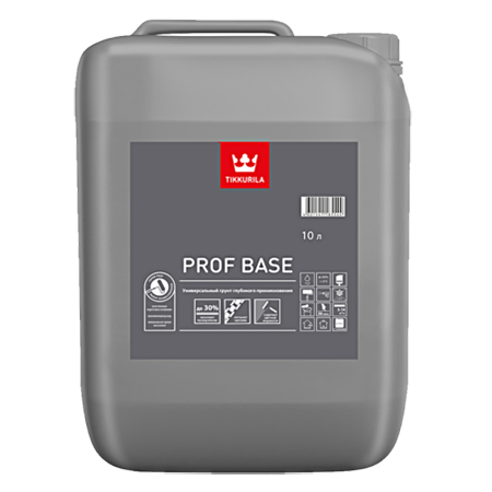 Tikkurila Prof Base  – это готовый к применению профессиональный водно-дисперсионный грунт глубокого проникновения для наружных и внутренних работ, с нейтральным запахом. Он идеально подходит для профессионального использования на объектах с высокими требованиями к качеству и стойкости отделки любых поверхностей жилых и коммерческих помещений.