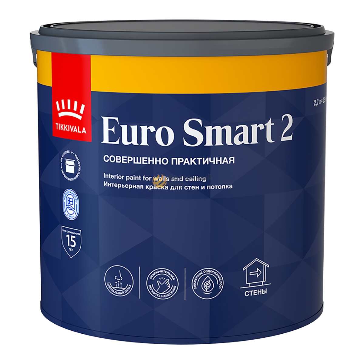 Tikkivala Euro Smart 2 – водоэмульсионная краска на акриловой основе для стен и потолков в сухих помещениях.
