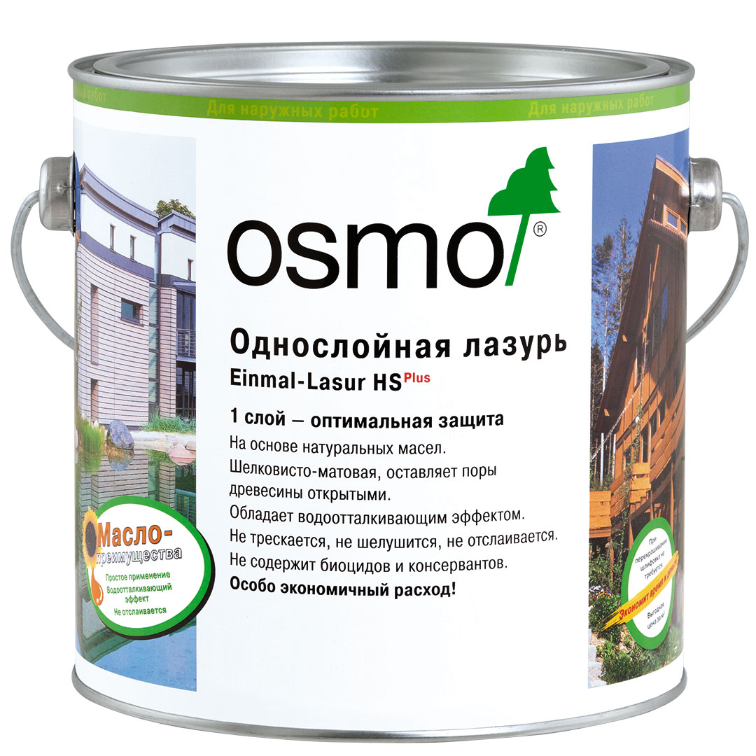Не забывайте, что правильная обработка древесины — это залог её долговечности. Osmo Einmal-lasur HS придаёт деревянным поверхностям красивый и эффектный внешний вид, делая их более привлекательными. Кроме того, продукт обладает отличными эксплуатационными характеристиками и обеспечивает идеальную защиту даже для особо уязвимых участков.